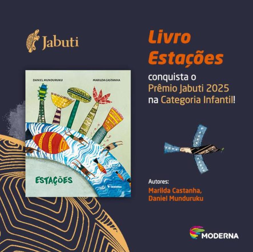 Estações, de Daniel Munduruku e Marilda Castanha (Moderna), vence o Prêmio Jabuti de melhor livro infantil.